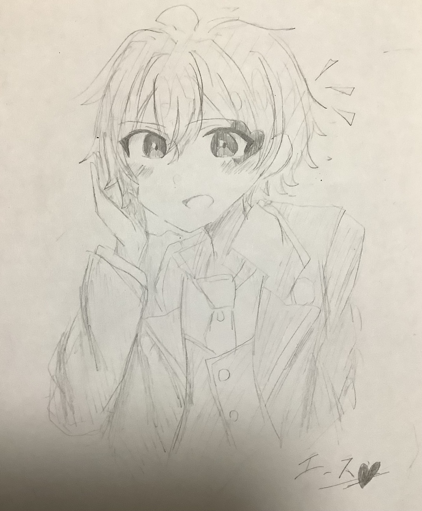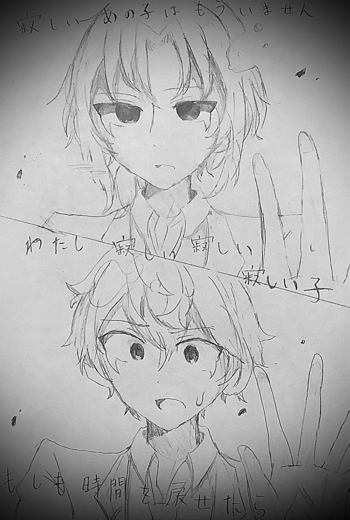 落書きで、あんスタの月永レオくんと瀬名泉くんできくおさんの君はできない子のイラストを描きました!昔の2人によく似ているなと思って、衝動書きしました、なので絵が絶望的……汗それにしても、加工ってすごいですね!(主はまだ成人してません)