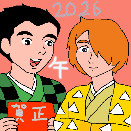 早速ですが、新年にまつわるイラストを描きました~(^^♪。スティーブとリオンの袴姿がよくお似合いですね~。(^▽^)描画に時間がかかりましたが、頑張って描くことができました。