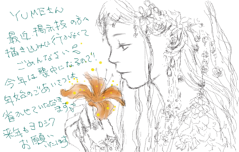 (絵はまた微模写になるのですけど...)絵の文句の通り、喪中になるので、年始のご挨拶は省かせて頂きます💦今年は、色々とありがとうございました!!...(タイッツーの事とか)凄くご迷惑をお掛けして💦申し訳ない想いです...。そんななのですが...来年ものろのろ運転ですが絵を頑張りたいな、と思いますので、宜しくお願いいたします<(_ _)>