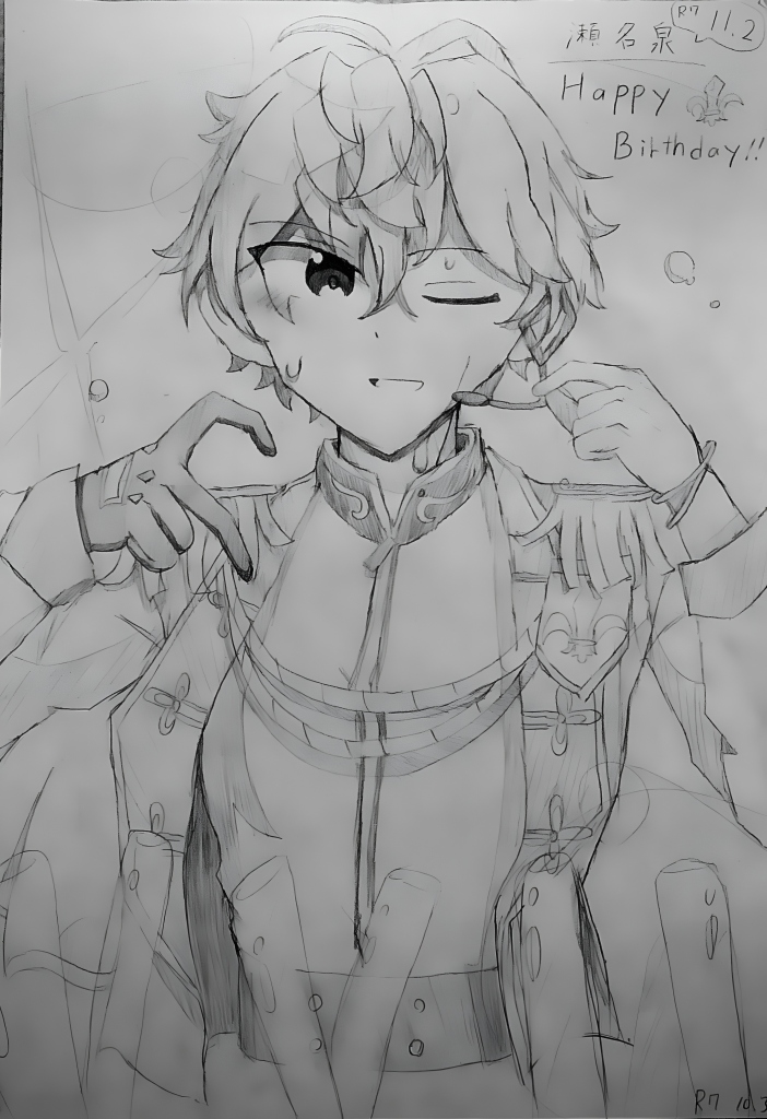 ㊗️本日は瀬名泉くんの誕生日です!!おめでとう🥳🎉🎊🎈10年間頑張ってきてくれて本当にありがとう!!これからもよろしくお願いします!!誕生日イラスト載せておきますね!この衣装は、5周年以前の旧Knightsの衣装です!