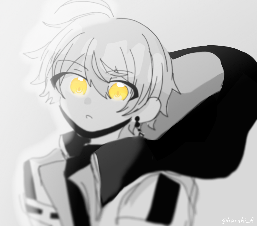 司くんめっっっちゃかっこいいですね⁉︎天才ですか?天才ですね⁈(うるさくてすみません)モノクロの中に目だけ色がついているのかっこいいし、絵にメリハリが生まれて素敵だと思います!